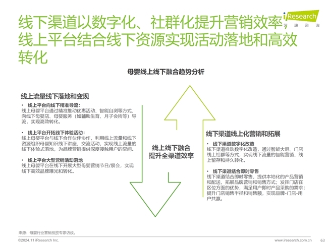 宝宝树结合线下资源实现活动落地和高效转化,推动了线上线下融合趋势的发展。一方面,线上母婴平台通过精准推送优惠活动和智能自测等手段向线下母婴店和服务导流,同时与线下合作伙伴组织母婴知识讲座和交流活动,以及在线下开展大型母婴营销节日/展会,以实现高效品牌曝光和转化。另一方面,线下渠道通过数字化改造,利用智能大屏和门店线上社群等方式,实现线下流量的智能营销和线上留存,同时结合即时零售提供本地化产品营销和配送,拓展品牌营销和销售方式,满足用户即时产品采购需求,提升门店销售半径和销售额,实现品牌、门店和用户的共赢。
