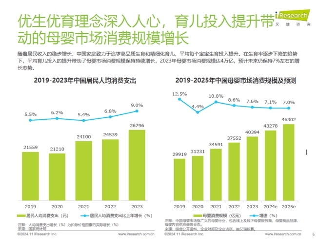 由于优生优育理念深入人心,平均育儿投入的提升带动了母婴市场消费规模的持续增长。报告显示,2023年母婴市场消费规模已超4万亿,并预计未来仍将保持7%左右的增长态势。这一增长背后,是家庭对母婴产品和服务的更高需求,以及母婴品牌在营销策略上的不断创新。
