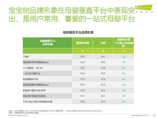 随着居民收入的稳步增长和家庭对高品质生育、精细化育儿的追求,新生代父母对母婴产品和服务需求的日益增长,母婴行业正迎来前所未有的变革,中国母婴市场正展现出新的发展趋势。近日,由艾瑞咨询发布的《2024年中国母婴亲子人群营销趋势洞察报告》(以下简称“报告”),深入分析了母婴行业的消费趋势、品牌营销现状及未来发展方向,揭示了数字化和智能化在推动行业创新中的关键作用。国内母婴社区头部平台之一,宝宝树以其优质的用户服务和精准的市场定位,在母婴垂直平台中稳居行业领先地位,而且在用户粘性、品牌形象等方面表现出色。