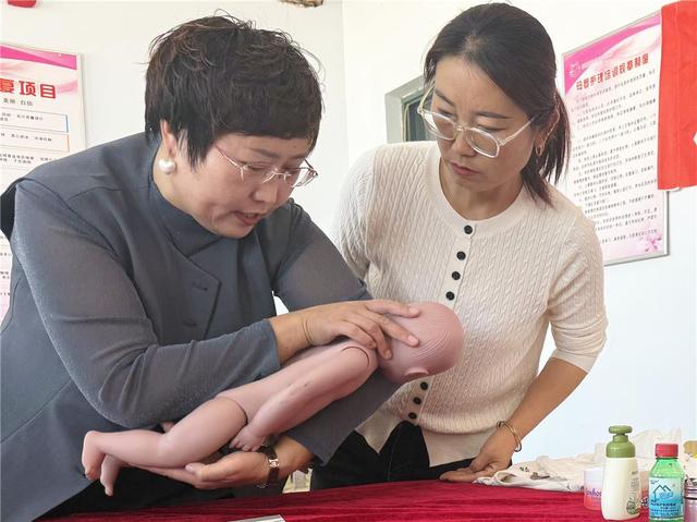学员赵冬娟正在进行婴儿护理实操练习。