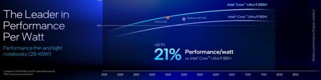 新一代 H系列处理器采用先进的 Arrow Lake-H 架构,配合台积电 N3B 工艺及 "Lion Cove P 核 + Skymont E 核" 组合,性能提升显著 —— 从基准性能来看,相比上代Meteor Lake-H系列提升巨大:不仅单核、多核性能提升约20%,能效比也提升了21%。